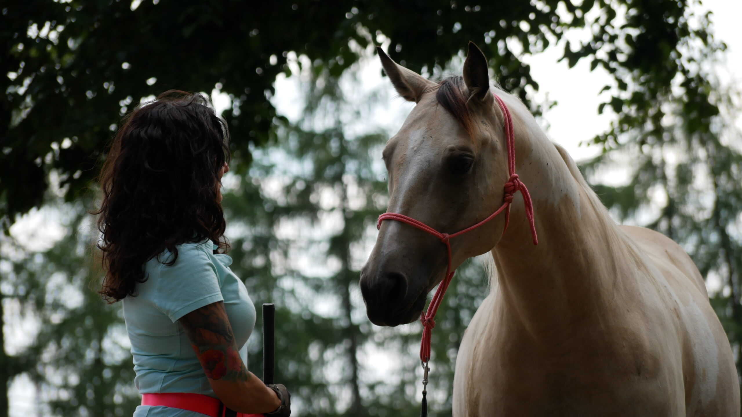 Dla głowy uspokaja i buduje zaufanie. Rytmiczne powtarzanie spirali wprowadza konia w spokojny stan, a koń uczy się utrzymywać kierunek i jednocześnie delikatnie reagować na sygnały człowieka. To rozwija respekt i uważność. Koń wie, że człowiek może poprosić o drobną korektę, a jego zadaniem jest ją lekko przyjąć. Ważne, by spiralę zmniejszać tylko do granic możliwości konia i naszego poczucia bezpieczeństwa. Gdy pojawia się napięcie czy emocje, warto powrócić do większej spirali, aby przywrócić spokój.